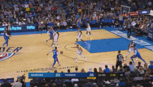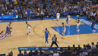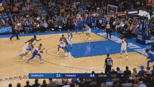下半场威少活力不减,8分25秒威少正面抢断库里得手,直接快攻and one!在他稳稳的命中加罚之后,雷霆已经领先勇士到达20分之多。
