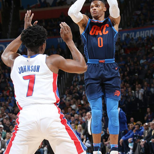 上一场对阵勇士的复仇之战,威少一人独得34分10个篮板和9次助攻的准三双。更为重要的是,威少在本赛季首次面对杜兰特之时,就取得了一场大胜,彻底解了俄城球迷的心头之恨。本赛季威少在场时,球队每百回合多得9分,无疑成为球队进攻的发动机。