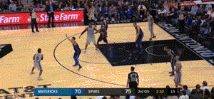 但是,苍天都知道小牛不服输!这可是牛马大战,不能在马刺主场丢了面子。第三节末段,他们逐渐将比分追上,在阿尔德里奇不在场上的时间内,小牛开始追分大战。这让今天的男主角坐不住了,阿尔德里奇在终场前7分钟回到场上,继续开始自己精彩的表演。