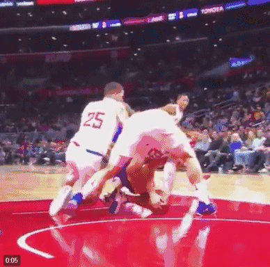 可即便如此,快船还是无法阻止球场上的意外出现。洛城德比战的第四节,格里芬在一次与鲍尔拼抢球权时,左小腿被同样上前争抢的小里弗斯重重地压了一下,格里芬随即面带痛苦地倒在场上,要知道小里弗斯体重为91公斤,被这重量一压的后果可想而知。虽然之后格里芬坚持打了一会比赛,但他最终还是选择提前离场,自己走回更衣室。格里芬这一次是被小里弗斯误伤的,小里弗斯算是又“坑爹”了一回。