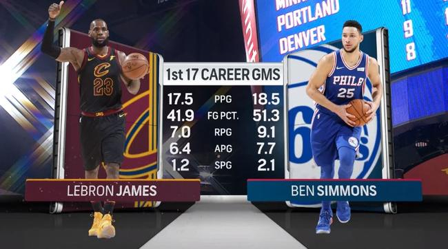 北京时间11月29日,昨天克利夫兰骑士客场以113-91大胜费城76人,勒布朗-詹姆斯和本-西蒙斯也迎来首次交锋。而美媒也不失时机地将二人拿来对比,发现二人生涯前17场数据竟相差无几。