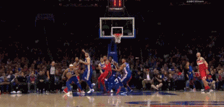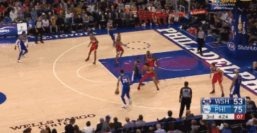第三节西蒙斯刚刚运球过半场就直接送出斜传球准确找到底角的考文顿,助攻他三分穿针,随后他自己突破篮下一个漂亮的转身过掉防守人,爆扣得分。