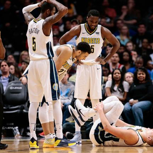 掘金前天刚惨败给爵士,少了保罗-米尔萨普后,他们就得很不稳定。而在今天的比赛中,他们又损失了内线悍将约基奇,更是举步维艰。
