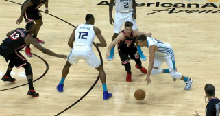 然而墨迹未干,霍华德却延续着近期“好一场歹一场”的规律。热火折损先发中锋哈桑-怀特塞德,连续第2场派出今年乐透区最末一名新秀阿德巴约先发,霍华德却仍“吃瘪”。尽管他在中投和持球突破上仍有所展示,但球迷们记住的却是他在掩护时一肘击中泰勒-约翰逊面门,以及被詹姆斯-约翰逊赏了火锅的窘态。