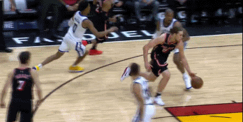 还有一个球,奥利尼克从右侧运球攻击篮下,而队友温斯洛在篮下帮奥利尼克卡住身后的勇士球员。最终,奥利尼克打成了一次2+1上篮。
