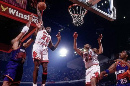 如果你认为乔丹只是一个得分高手,那就大错特错了。乔丹职业生涯一共九次入选过防守一阵,在1997-1998赛季同时拿下得分王和最佳防守球员。NBA球员很难把精力同时放在攻防两端,攻守兼备的球员很多,但比赛中他们大多为了节省体力,选择不去防守对方的尖兵球员,下一个乔丹一样的奇才不知何时会到来。