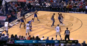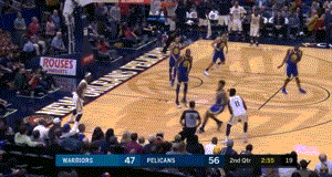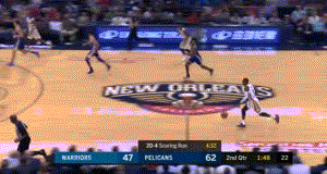 第三节比赛开始,又是隆多,顶着杜兰特漂移投篮打中,浇灭一波勇士追分势头。不过,隆多下半场的表现不及上半场那般精彩,而卫冕冠军勇士也在下半场展现了自己强大的实力。库里、格林 、汤普森、杜兰特、尼克-杨分别在外线开火,第三节一上来打了鹈鹕一个措手不及。在第四节末段将比分拉开,最后时刻杜兰特和考辛斯纷纷被罚下,不过勇士最终还是战胜鹈鹕。