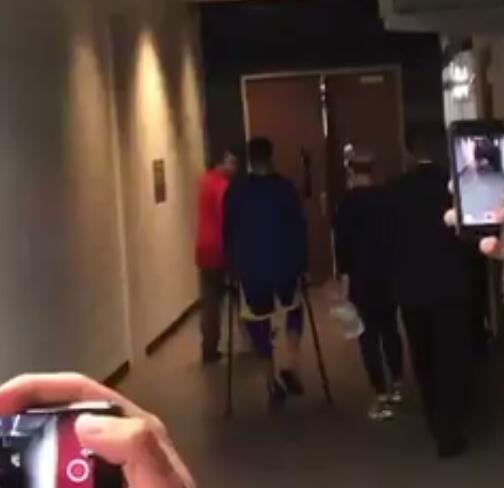 赛后,媒体拍到库里拄着拐杖前往X光室检查。看得出来,库里的情绪很沮丧,他低着头,而且还无奈地摇了摇头。