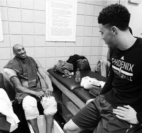 布克和科比的缘分早就在他新秀赛季被炒上了天:同是1米98的后卫;同样在首轮第13顺位被选中;科比选秀那年布克刚出生,科比退役这季他又迎来新秀赛季……