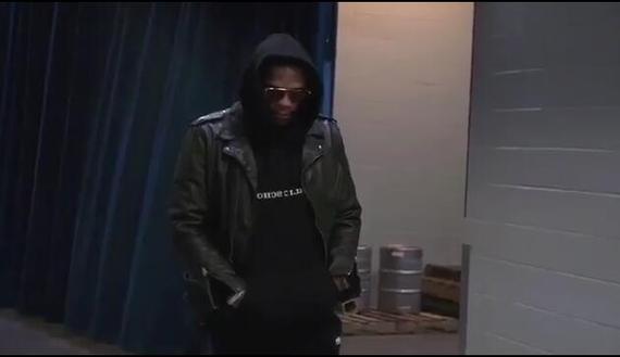 威少连帽衫皮衣酷炫走进球馆