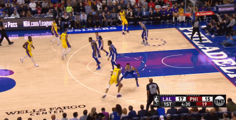 今天的比赛,站在英格拉姆对面的,除了NBA最好的护筐中锋之一乔尔-恩比德,还有英格拉姆同一届的状元秀本-西蒙斯。比赛中,英格拉姆似乎想要证明些什么,比以往更坚决地一次又一次冲击篮下,不屈不挠。