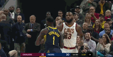 这一球发生在第一节结束前1分14秒,当时步行者刚刚达成一次进攻,骑士后场发球,斯蒂芬森快速退防,紧缠勒布朗。