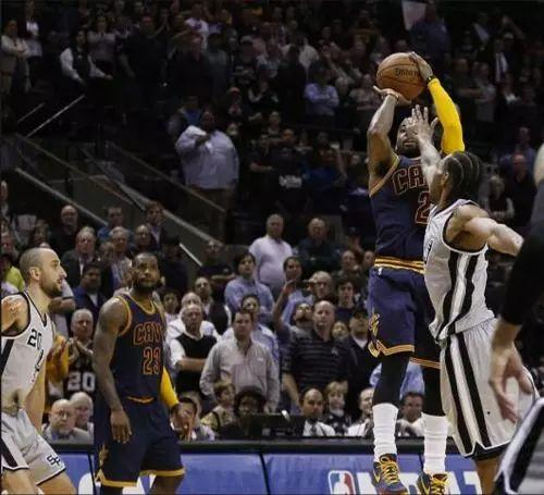 欧弟真的只差一丁点儿,就能带队搞定马刺。首节比赛,他便抢下17分,杀的马刺风声鹤唳,草木皆兵。待到末节决生死,比赛还剩1分52秒,欧弟弧顶干拔,出手,顶着防守,空心命中。