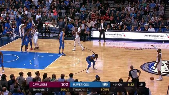 其实在这81分里,很多得分都是来自同样的手段。詹姆斯首先寻找到对手防守最差或者移动速度最慢的球员,随后他开始呼叫掩护,将该球员换防到自己面前。在这个视频中,克劳德的防守人正是小牛队已经年满39岁的老将诺维茨基。