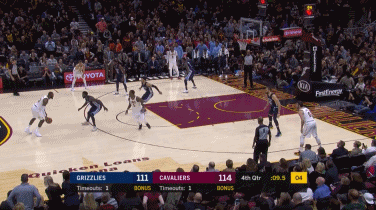 距离比赛结束还有40秒,骑士以111比109仅仅领先灰熊2分,勒布朗持球,他得到了自己一直想要的错位机会。JR上前给勒布朗做掩护,他将防守詹姆斯的杰迈克尔-格林给带走,从而詹姆斯面前的防守人变成了今年选秀大会上第47位被选中的新秀狄龙-布鲁克斯。从那开始,詹姆斯便开启了攻击模式。勒布朗在弧顶持球单打布鲁克斯,加速开始突破,与布鲁克斯产生身体对抗,不过勒布朗凭借着自己的身高优势,将球打进并且得到一次加罚的机会,拿下全场比赛的第31分。