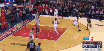 第三节比尔继续发威,转换进攻中自己一条龙上篮得分;接队友传球底角三分一箭穿心;最精彩的一球是比尔利用挡拆直接从两名防守球员中穿过,杀到禁区挑篮得分。