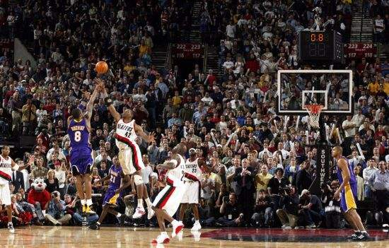 在禅师到来后,OK组合的湖人补足了最后一块拼图,当赛季闯入西区决赛,对手是坐拥豪华锋线阵容的开拓者。在生死战,湖人在第四节一度落后15分,奥尼尔也陷入重围。危急时刻科比挺身而出,率队在最后时刻迎头赶上。终场前一分钟,科比面对皮蓬的防守,变向轻松突破,吸引内线防守后立刻分球给篮下,奥尼尔爆扣得手。湖人终以89-85跨过了王朝路上最艰辛的关卡。全场科比砍下25分11个篮板7次助攻4次盖帽。