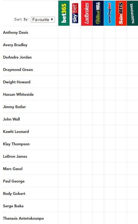 跟MVP不同的是,最佳防守球员的赔率始终没有正式开出。目前,只有这样一份提名名单。从名单内容来看,这些球员个个都有一身出色的防守功底,入围提名可以说是实至名归。名单中既有上届最佳防守球员追梦格林,也有攻守一体的莱昂纳德、詹姆斯、字母哥。有些防守出色,但容易被人忽视的球员,也在榜上,例如:克雷-汤普森。
