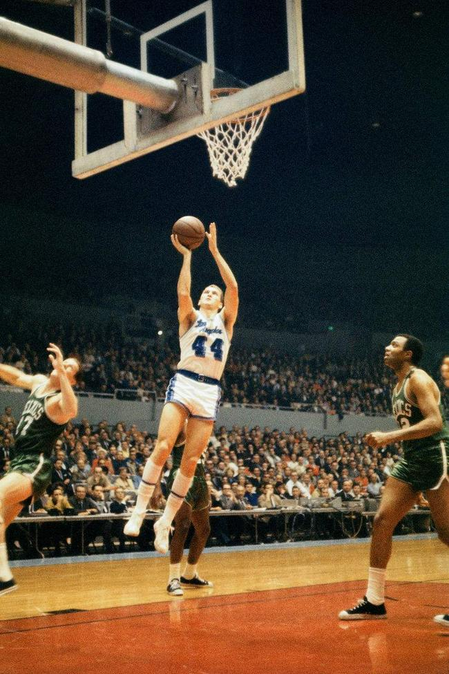杰里-韦斯特在1960年选秀大会上,被洛杉矶湖人队在第一轮第二顺位被选中。从此,便开始在湖人队戎马生涯14年载。在湖人队时期,韦斯特是是1946年NBA联盟成立以来,截至目前唯一一位以失败者身份捧起总决赛MVP的球员。在韦斯特的职业生涯中,最神奇的一投发生在1970年总决赛对阵纽约尼克斯的第三场比赛中,最后时刻,他命中了一记60英尺外的投篮。在1972年,韦斯特赢得过唯一的一次NBA总冠军。1983年,湖人队退役了韦斯特的44号球衣。