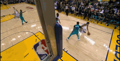 本场比赛的第一节前半段,勇士队的投篮手感非常不错,特别是克雷-汤普森不断命中投篮,相对而言,杜兰特在开局阶段表现得比较低调,他没怎么进攻,而且黄蜂的巴图姆一直贴身防守杜兰特。