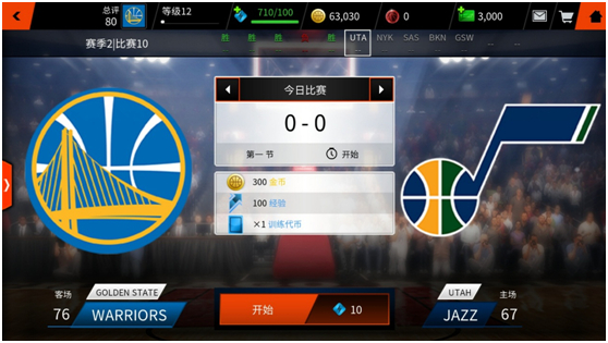 点击下图中的“开始”按钮就可以开始赛季比赛;