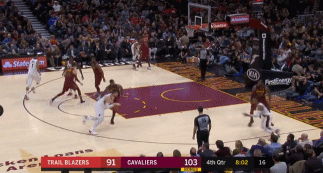 然而第四节开始后,骑士打出了一波12-0的高潮,领先优势达到两位数。因为外线投不开,开拓者只能把球给内线。第四节还剩7分58秒,纽基奇在篮下打板命中,而且造成犯规。过了没多久,他再次造成骑士的犯规,并走上罚球线。