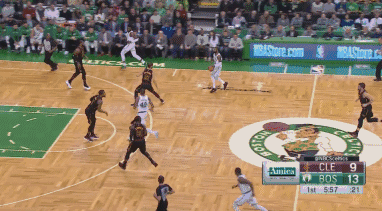 第二节比赛1分25秒,欧文与霍福德手递手传球,突破到骑士防守禁区之后,分球给空切到内线的霍福德,后者举火烧天完成单臂暴扣。