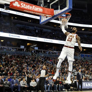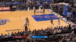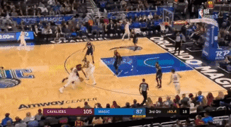 第四节当魔术迫近分差到10分以后詹姆斯回来,一回来就先是帮助汤普森在篮下得分,随后詹姆斯突破戈登后,面对补防的富里耶直接选择了隔扣。