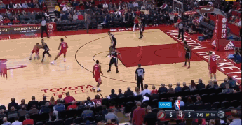 本场比赛开始后,戈登就立刻进入进攻状态,他连续外线出手得分,一个三分,之后一个远距离两分球命中且造成防守球员的犯规,为火箭队打出一个不错的开局。