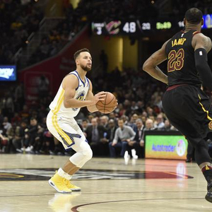 此役来到克利夫兰挑战骑士队,库里一开场便被对手严加看防。但是“水花兄弟”的另外一员克莱-汤普森却手感火热,库里随即与队友连连传球配合。