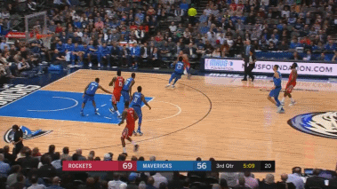 第四节开始后,独行侠的马修斯连中2个三分,不断追分。本节还剩9分多钟,戈登回敬了一个三分。