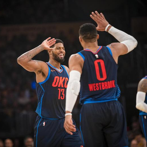 北京时间1月26日,据美媒体报道,雷霆当家球星拉塞尔-威斯布鲁克公开为队友保罗-乔治落选全明星而鸣不平,这个举动让乔治非常感动,而且乔治还承认威少的这种兄弟义气会让他在今夏自由球员市场上的决定变得更加容易。