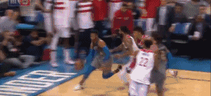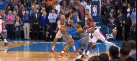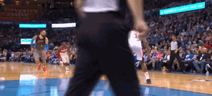 威少率先发难,而这一幕颇有戏剧性。第四节8分06秒,威少中投得手,但篮下迈克-斯科特却搂着亚当斯脖子将其放倒在地,球权重归雷霆,而威少不再客气,突破后一记劈扣,令观者大呼过瘾。这彻底激怒了客队阵中一好汉,布拉德利-比尔随即打中3+1,然而威少先是如闪电般再袭篮下,随后又在快攻中再演爆扣,并助飞乔治。