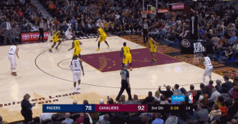 第四节每当步行者要有追分势头时,总是詹姆斯站出来完成得分,最后一分钟詹姆斯利用掩护突破奥拉迪波上篮得分锁定了胜局。