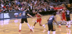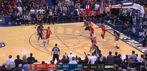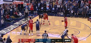 比赛进行到第四节,当时火箭已经落后鹈鹕两位数以上,为了避免纪录被打破,哈登、保罗开始率领球队绝地大反击。哈登先是在吃了第一节的亏之后,这次迎着浓眉哥上篮打进,吹响反击号角。