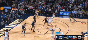 在前三节半手感糟糕的情况下,威少在第四节关键时刻突然爆发,最后3分05秒内,他独得10分,但是在第四节最后一刻,威少漏掉了掘金后卫加里-哈里斯,结果被哈里斯三分绝杀。