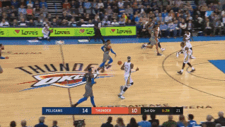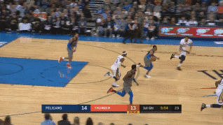 比赛也是一波三折。开场雷霆限制住了安东尼-戴维斯,却被客队外线轰出10-4的开局。随后,雷霆在史蒂文-亚当斯一夫当关的情况下将防线外扩,一度使鹈鹕内外失据,并借此频繁打出反击,不但反超,且一度领先达16分。