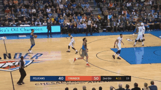 半场威少得到9分7个篮板9次助攻,球迷们似乎可以预见今天的威少将把胜利和三双皆揽入怀中,一雪昨日比赛之耻,但改变却也在此时发生。鹈鹕从第二节开始提速,戴维斯也拉到高位发炮或策应,使亚当斯陷入进退两难局面。同时,鹈鹕射手群再次箭如雨下,首回合被戴维斯只手率队逆转的一幕,貌似又将重演。