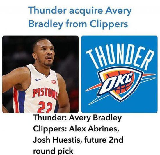 在2月3日,《华盛顿邮报》记者蒂姆-邦当曾报道,雷霆队有意得到艾弗里-布拉德利,雷霆队希望得到布拉德利来顶替罗伯森,重铸雷霆后防线,而布拉德利因为刚被交易到快船,所以只能单独交易,所以雷霆队的报价为阿夫里内斯+休斯蒂斯+次轮签,此交易提案仍在谈判中,因为快船希望得到的是一个首轮签,但雷霆认为布拉德利只有半个赛季的使用权他的交易价值并没有那么高。