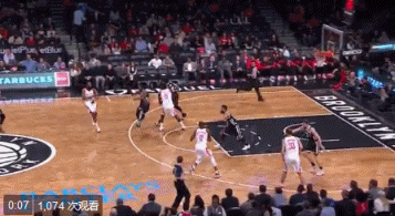 首节7分55秒,卡佩拉展现了在火箭师从哈登的技艺,罚球线持球后面对阿伦防守,一个大幅度欧洲步晃开对手,完成抛投。