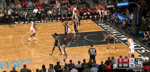 此役客场挑战篮网,虽然对方实力不济火箭,但双方开场就打得难解难分。开局火箭第一次进攻,卡佩拉在篮下接到队友的传球,便利用左手勾手终结进攻。随后他和哈登打成挡拆配合,哈登轻轻抛传,卡皇空切篮下后高高跃起,接球吃饼完成日常操作。