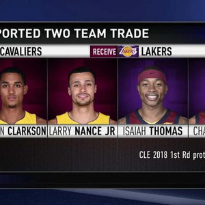 湖人队得到:托马斯、弗莱和骑士队的2018年首轮选秀权