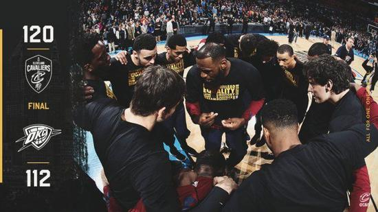 今天骑士在客场120-112艰难战胜雷霆,比赛是在最后两分钟才决出胜负的。这是骑士连续第4场比赛全场得分不低于120分,是队史首次有这样的表现。詹姆斯高效砍下37分8篮板8助攻1盖帽,JR-史密斯18分6篮板3助攻,胡德14分2篮板2抢断,克拉克森14分3篮板4助攻,乔治-希尔7分4助攻,杰夫-格林10分4篮板,小南斯13分9篮板2助攻3盖帽,奥斯曼5分2篮板,汤普森2分5篮板。[单核骑士原来这么强!玩篮球大师充值返99元现金红包]