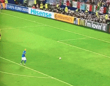 再来重温一下扎扎这一幕,当时孔蒂故意将基耶利尼换下,换上扎扎,让他来主罚点球,谁知道当扎扎用慢动作回放的跑动,4秒时间跑完5.5米的距离时,意大利球迷已经有不祥之感。果然,扎扎的左脚劲射,直接飞出横梁!