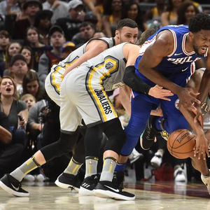 相比之下,恩比德本场在进攻端却稍显犹豫。骑士本场秉承以速度换取空间的策略,特里斯坦-汤普森主防内线,体型和速度均不占优的他本该成为恩比德的重点打击对象。不过纵观全场,恩比德仍大多选择顶着汤普森,或干拔,或翻身跳投,持球强吃对手爆扣的场面可谓寥寥。