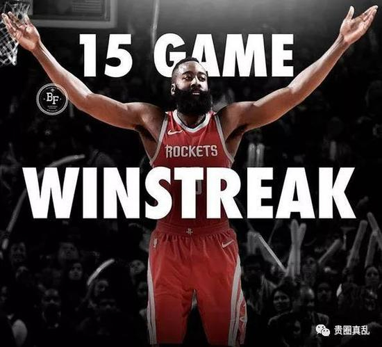 哈登率队取得15连胜