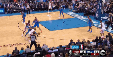 经过半场调整,第三节保罗爆发,哈登则适时让出舞台。保罗先是和P.J-塔克打出传切配合,接塔克回传上空蓝得手,又接哈登传球,在对手双手封住自己双眼时,仍命中底角三分。6分33秒保罗持球突入,在底线横传塔克飙中3分。