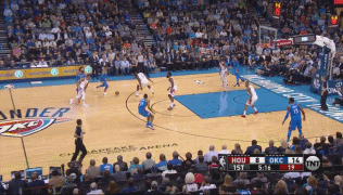 第二节开始后,火箭打出一波进攻高潮,并逐渐扩大领先。与此同时,雷霆的进攻陷入困境,威少连续出手不中。此时,安东尼站了出来,从本节还剩6分23秒到2分11秒的这4分多钟,安东尼连得9分,而雷霆依然落后11分。但如果没有他在这段时间的连续得分,比赛估计已经花了。