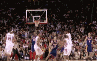 全场最后一攻,麦蒂持球突破防守,吸引到国王阵型的收缩,他将球传给了三分线外伺机待命的史蒂夫-诺瓦克。平时垃圾时间才能捞到出场机会的诺瓦克,面不改色,接球抬手一剑封喉。