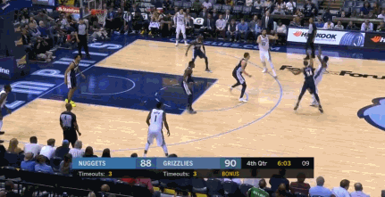 双方差距一度达到20分。第二节还有1分34秒时,埃文斯突破上篮,灰熊仍以52-37领先。掘金终于爆发,约基奇和穆雷相继命中三分,打出一波11-1后,上半场只以48-53落后。